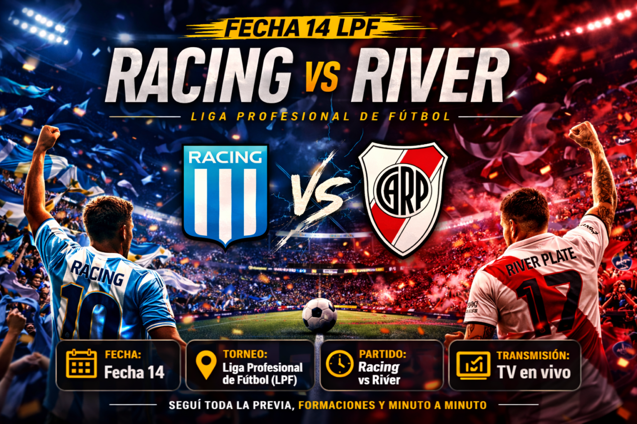 Racing y River vuelven a cruzarse este domingo 12 de abril en el Cilindro de Avellaneda, por la fecha 14 de la Zona B del Torneo Apertura 2026. El partido arranca a las 20:00 en Argentina, en el país se podrá ver por ESPN Premium, mientras que en el resto de Latinoamérica estará disponible en Disney+.